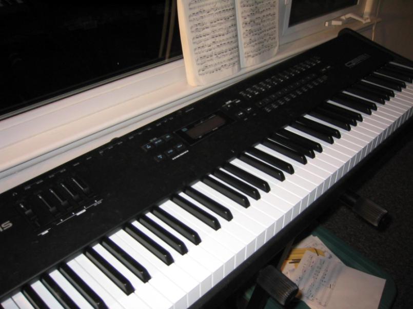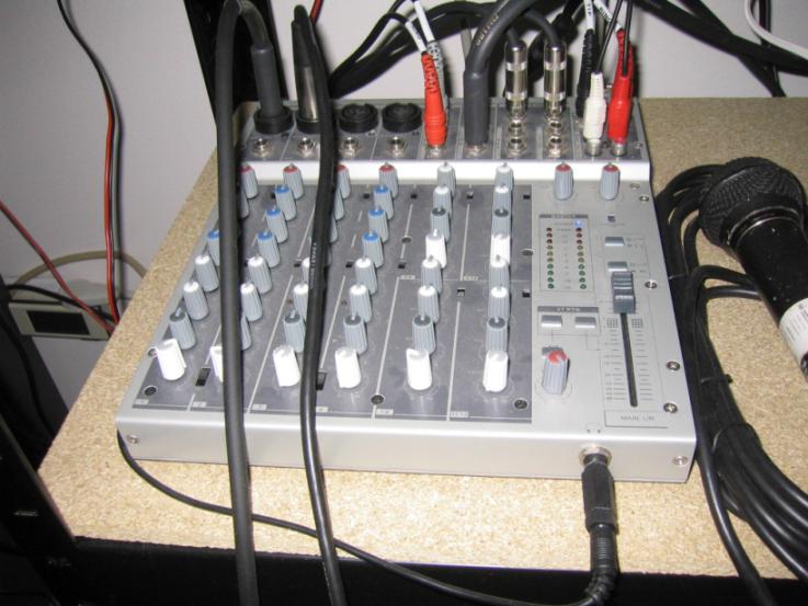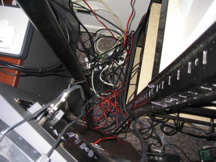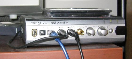 Check out my new quiet computer My studio at home is a pretty hacked together affair, but I am slowly upgrading. The centerpiece is a custom AMD Athlon XP 2500+ at 1.8GHz, with 1GB of RAM and approximately 120GB hard drive space. I just upgraded to a Soundblaster Audigy 2ZS Platinum Pro sound card: 108dB S/N, 24bit/96kHz recording and playback, an external hub--in my opinion, blurring the line between consumer and pro (really, all that's missing is more connectivity). I also have DVD and CD-RW drives, a 19 inch ViewSonic PF790 monitor, and a keyboard with the Dvorak layout (irrelevant to music, but lots of geek cred). I have a pair of Alesis M1 Active studio reference monitors, and Sennheiser RS65 wireless headphones (very nice). Also, a pair of old Sony 200W home theater speakers, run off a Sony amp so old I don't know its model number. My mixer is a Phonic MM1202 (what the hell is that!? you rightfully ask, to which I reply, a $50 piece of E-bay junk that is definitely the next part to upgrade). Instrument-wise, I have an Alesis QS8.1 88-key weighted keyboard, with plenty of sounds that are surprisingly decent. I have an Ibanez RG220B electric (gunmetal grey) with a Duncan Screamin' Demon pickup at the neck. I play through a Dunlop Crybaby 535Q wah, then an Ibanez TS9DX Turbo Tube Screamer (both great pedals), then a cheesy Zoom GFX707 multieffects board, and finally a pathetic Crate MX15R amp (actually 12watts, the cheap bastards!). I also have a Yamaha FG-432S acoustic. Oh, and my long-neglected Bach Stradivarius trumpet in a closet somewhere... Well, not the most impressive studio in the world. My primary criterion was bang for the...cent. But hey, at the end of the day, I can still get music out of it. As money comes my way it will no doubt head right back out the door into the waiting arms of Mackie, Marshall, MOTU... Click on the thumbnails for larger images: |